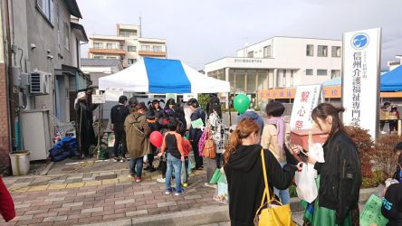 ブースの場所は例年通り信州介護福祉専門学校の駐車場でした。